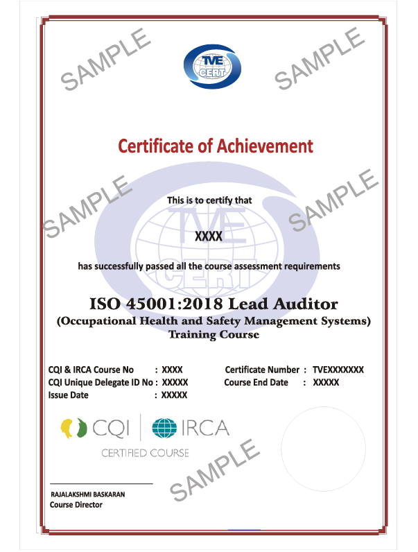 Chứng nhận CQI & IRCA Certified OHS Lead Auditor